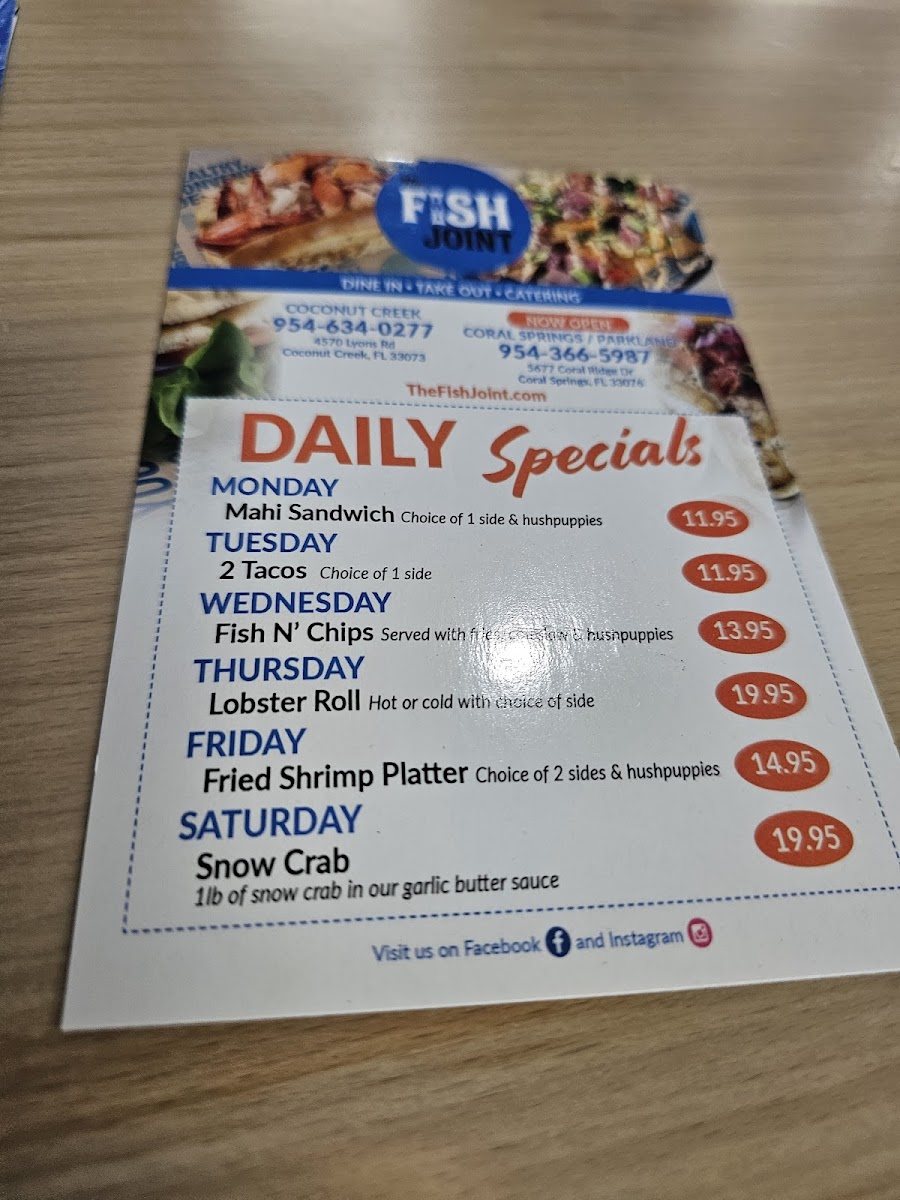 Welcome to The Fish Joint, a delightful seafood haven located at 4570 Lyons Rd, Coconut Creek, FL. This local gem excels in providing fresh and flavorful seafood with a range of offerings to satisfy every palate.